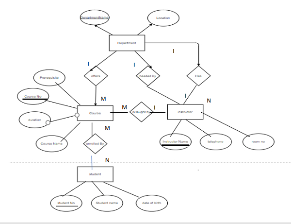 Instructor − The relevant attributes are Instructor Name, Room No, and telephone number.