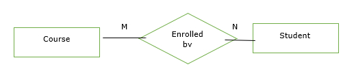 One course is enrolled by multiple students and one student for multiple courses. Hence, relationships are many to many.