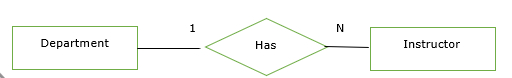 One department has multiple instructors and one instructor belongs to one and only one department, hence the relationship is one to many.