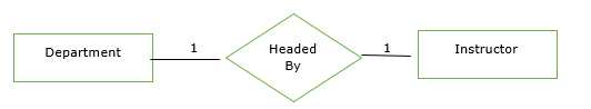 Each department has one "HOD" and one instructor is "HOD" for only one department, hence the relationship is one to one. Here, HOD refers to the head of the department.