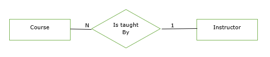 One course is taught by only one instructor but one instructor teaches many courses hence the relationship between course and instructor is many to one.